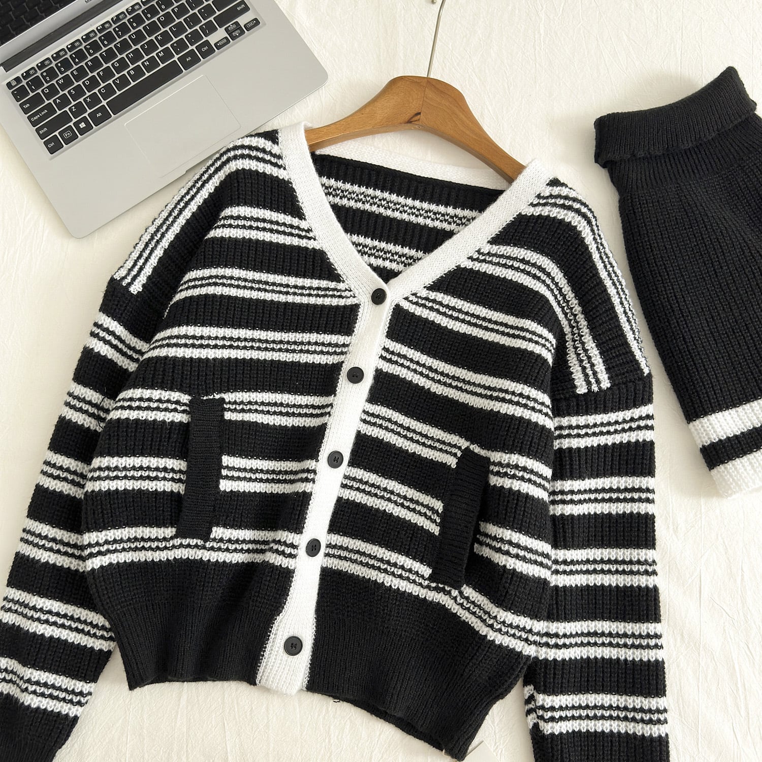 おしゃれなボーダーデザインが特徴のVネックカーディガンです!柔らかな素材感とリラックスしたシルエットが、快適な着心地を実現しています♡カジュアルなデイリーコーデはもちろん、重ね着を楽しむことで様々なスタイルに応用できる万能アイテムです。