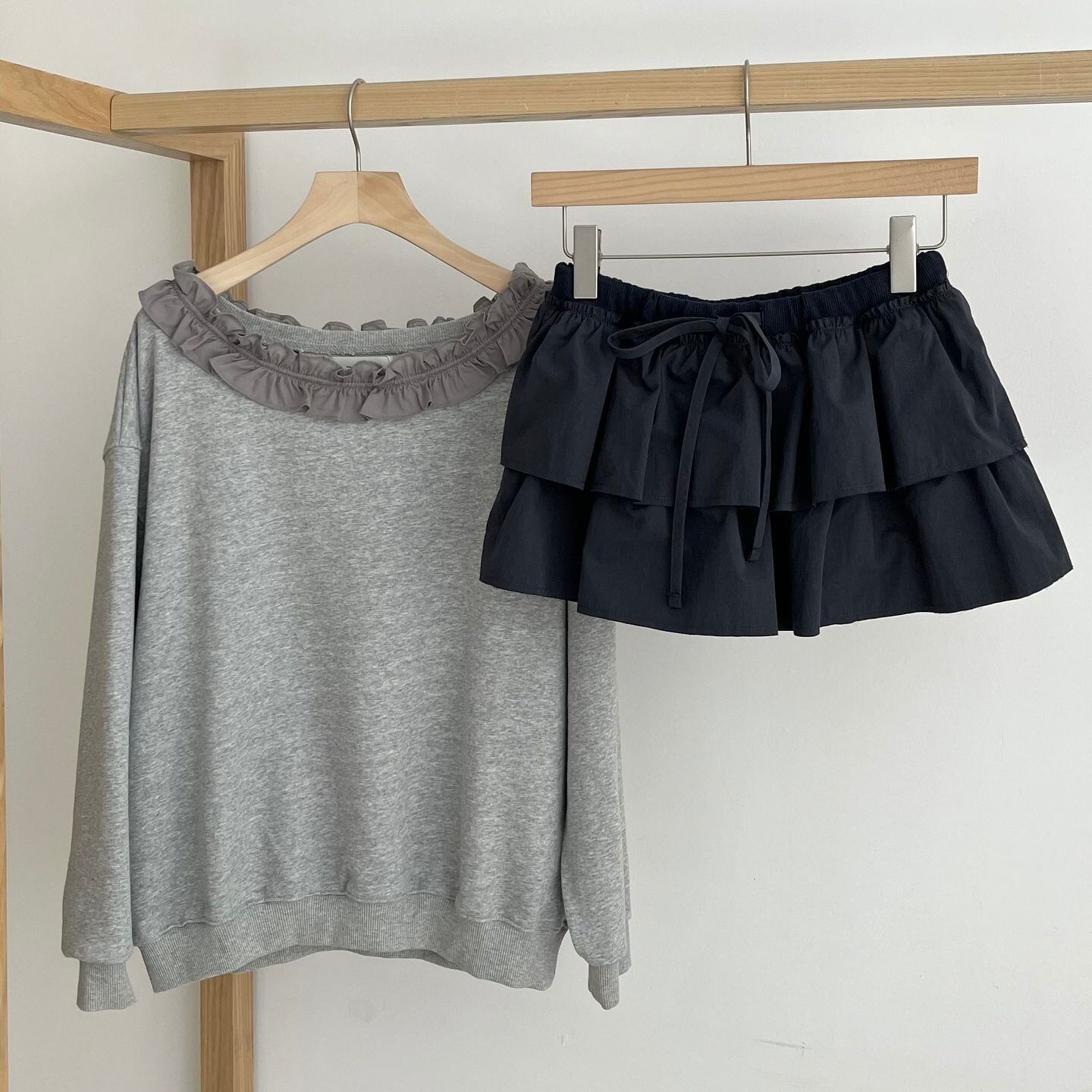 おしゃれで女性らしさを引き立てるフリルスウェットトップスとティアードスカートのセット♡