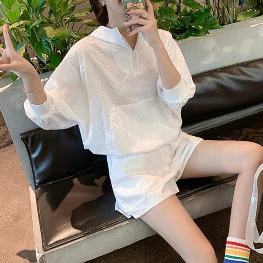 フーディとショートパンツの組み合わせが特徴で、シンプルながらも快適さを引き立て、さまざまなコーディネートが楽しめるのが嬉しいポイントです。フード付きのデザインは、リラックスしたスタイルにぴったりで、ちょっとしたお出かけにも活躍する魅力を持っています!