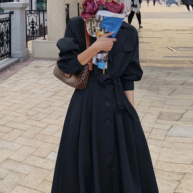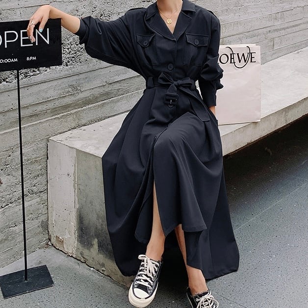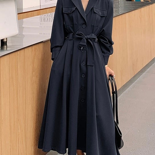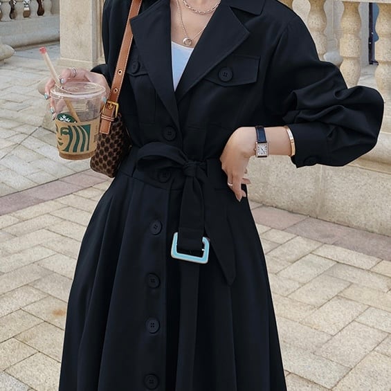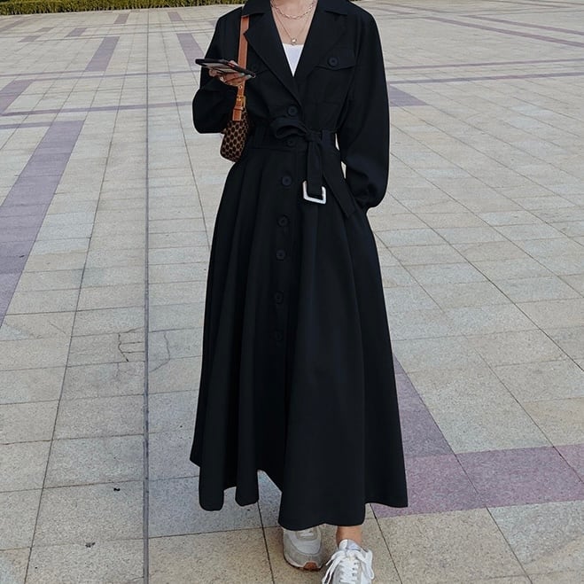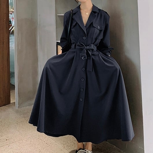 薄手の素材で、長めの丈が女性らしいシルエットを演出します。シンプルなデザインながらも、フレアの広がりが上品な印象を与え、どんなコーディネートにもマッチする一着です。