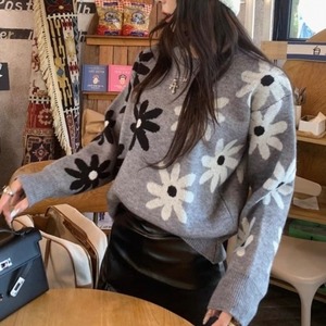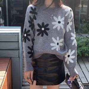 Big flower pattern knit top (ビッグフラワー柄ニットトップス)