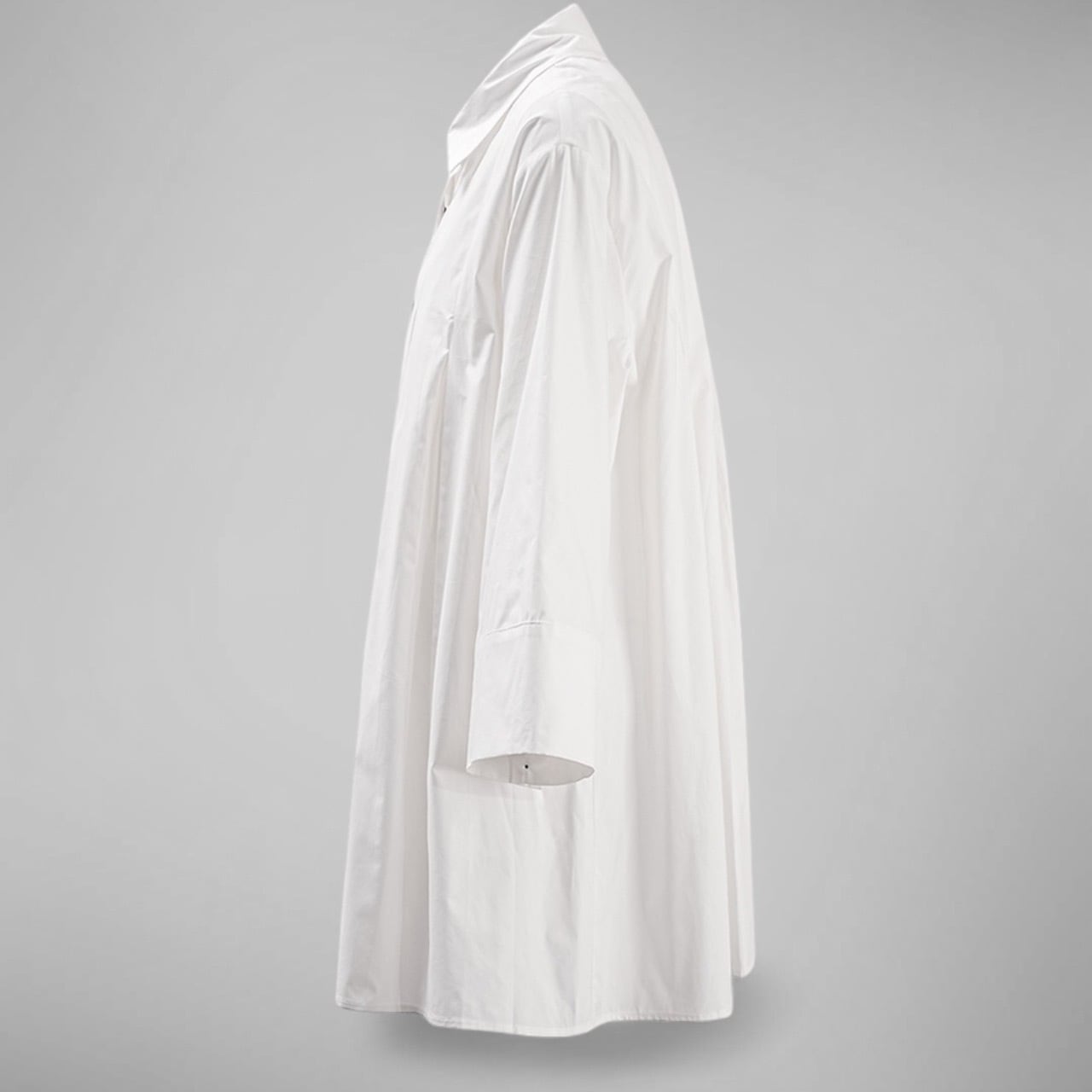 豊かなボリューム感とAラインシルエットが魅力のこちらのシャツワンピースは、シンプルながらも洗練された印象を与えるアイテムです。流れるようなラインが女性らしさを引き立て、カジュアルな日常使いからお出かけまで幅広くご活用いただけます!