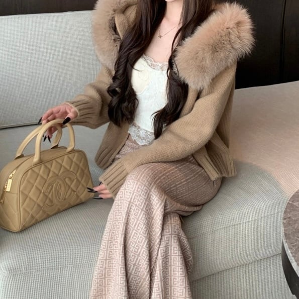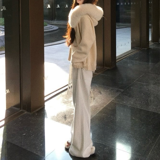 フード部分のボリュームファーが特徴のこちらのニットパーカーは、肌寒い季節にぴったりなアイテムです。ボリューム感のあるシルエットが存在感を引き立て、カジュアルなコーディネートに華やかさをプラスしてくれます。デイリーコーデからお出かけまで幅広くご活用いただけること間違いなし!