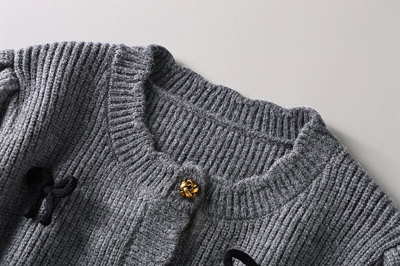 可愛らしいリボンモチーフとスカラップデザインが施されたこちらのカーディガンは、華やかでありながらも上品な雰囲気を醸し出すアイテムです。シンプルなスタイルに特別感をプラスし、デイリーコーデからお出かけシーンまで幅広くご活用いただけること間違いなし!